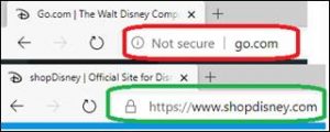- – Never share your credit card information on a site that is not secure. Look for a URL that starts with the https instead of http and displays a lock to the left of the URL.